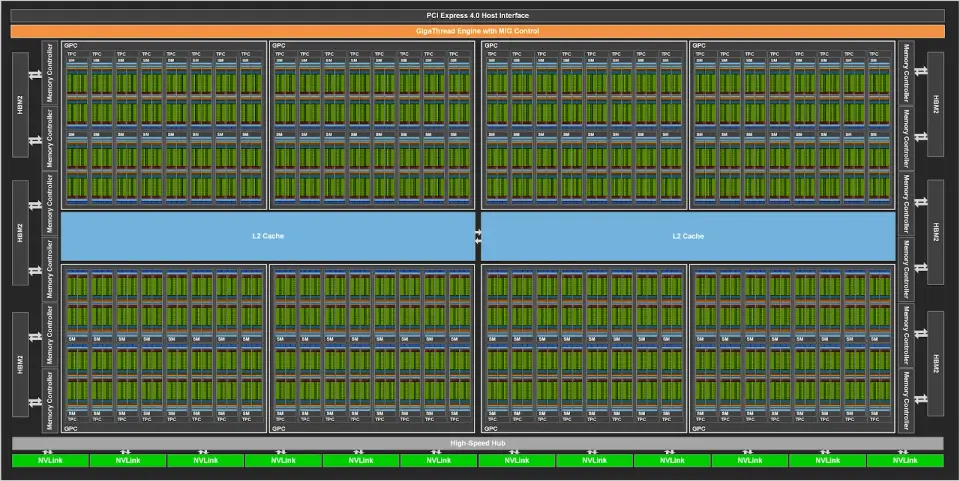 Architektura A100: megačip s 8192 CUDA jádry