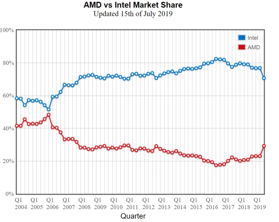 Podíl procesorů AMD v Asii prudce vzrostl, skok ukazuje i Passmark