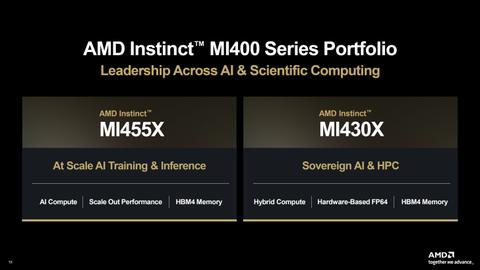 AMD chce pořádně zabojovat proti Nvidii se svými novými akcelerátory, které chystá na nejbližší roky. V příštím roce 2026 to má být řada Instinct MI400. Ta se bude skládat ze dvou modelů, a to Instinct MI430X pro hybridní výpočty včetně AI, ale především obecně různých HPC. AMD např. zmiňuje podporu formátu FP64 (hardware-based). Druhým modelem bude Instinct MI455X, což bude řešení cíleno primárně na AI, a to nejen inferenci, ale také trénování.