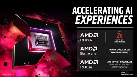 Prvními procesory AMD s NPU byly Ryzeny 7040 (Phoenix), dostaly se také do jejich druhé generace Ryzen 8040 (Hawk Point). Pokud jde o GPU, tak architektura RDNA 3 přináší pro AI 2krát vyšší výkon než předchozí generace a profesionální karty Radeon PRO W7900 zde nabízí až 192 AI akcelerátorů optimalizovaných i pro formát FP16. Tato karta má 48 GB paměti GDDR6 na 384bitové sběrnici, AMD Infinity Cache a podporuje frameworky jako DirectML 6, Nod.AI Shark a ROCm 6.0.