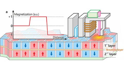 Toto řešení využívá technologii HAMR (Heat-Assisted Magnetic Recording). Zahříváním těchto vrstev a tím, že každá má tuto teplotu trochu jinou, lze zapisovat na konkrétní vybranou vrstvu. Celá věc má ale jeden háček. Curieova teplota první vrstvy je nižší než té druhé (T1<T2), takže když laser zahřeje dané místo zápisu na teplotu T2, přepisují se obě dvě vrstvy. Důležitá je v tomto okamžiku druhá vrstva. Pak se síla laseru trochu sníží, aby byla nižší než T2 (tedy aby se nezapisovalo do druhé vrstvy), ale byla vyšší než T1 (tedy aby bylo možné zapsat do první vrstvy). Nyní se dostáváme z toho, že zatímco dosud bylo na jednom místě (vertikálně) mít jen dva bitové stavy, nové řešení přináší přináší v praxi tři možné stavy. Lépe řečeno, jsou ve skutečnosti čtyři, ale mezi dvěma z nich nedokážou vědci zatím rozlišovat, je to ale možná cesta do budoucna.