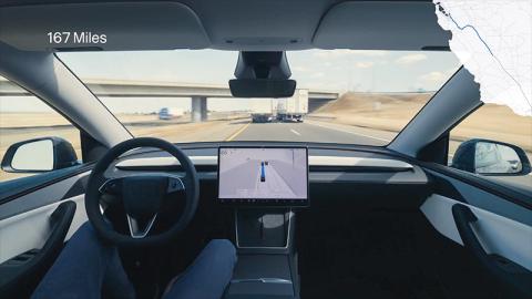 Tesla nicméně na sociální síti X ukázala, že vůz je už s pomocí FSD Supervised schopen dojet opravdu hodně dlouhé vzdálenosti. Konkrétně šlo o jízdu mezi Bay Area v San Franciscu a Los Angeles, což byla cesta dlouhá přes 360 mil (580 km). Systém to měl usnadněno tím, že většinu času jel po dálnici, což je něco, co adaptivní asistenti více či méně zvládají už nějakou dobu, nicméně potkalo ho i několik městských křižovatek. Během cesty se vůz jednou nabíjel. Celá cesta zabrala zhruba 7 hodin a k dispozici je ve velmi zkráceném time-lapse, které má jen necelou minutu.